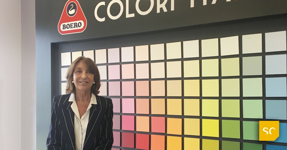 Genova è la terra della Boero: in questa città l’impresa è nata e poi ha prosperato senza perdere mai di vista quel porto che dava lavoro e favoriva l’allargamento del mercato in territori lontani della nostra penisola: “Circola in famiglia la leggenda che siamo arrivati in Sicilia prima noi di Garibaldi” scrive Andreina nel suo discorso e si avverte in queste poche parole un orgoglio appena temperato dall’accenno al fatto che appunto potrebbe trattarsi di leggenda. Sta però di fatto che dal momento in cui l’azienda venne fondata, nel 1831, da Bartolomeo Boero, fino a quando lo stabilimento, nel 2009, è stato trasferito al di là degli Appennini, a Rivalta Scrivia, Boero ha sempre fatto di tutto per restare nella città del cigno, lo stesso che da quasi un secolo esibisce la sua genovesità nel logo aziendale. La prima sede è via San Nazaro, nel quartiere di Albaro: “un capannone dove veniva macinata e preparata la biacca, ai tempi l’unico pigmento bianco esistente”. Due operai, un cavallo e un carro: questo è il ritratto dell’azienda ai suoi inizi. Ma l’attività prospera ed ecco che avviene il primo trasferimento, poco lontano, in via della Vespa. Erano zone allora poco urbanizzate, collinari, amate dai genovesi benestanti che lì avevano il loro buen retiro, ma destinate a essere rapidamente assorbite nel tessuto infrastrutturale cittadino. E difatti, nel 1907, la necessità di espandersi della Boero, entrata in collisione con l’allargamento della città, porta Filippo, figlio di Bartolomeo e nonno di Andreina nonché figura di imprenditore a tutto tondo che inventa nuovi macchinari e trasforma l’azienda in un colorificio vero e proprio, a costruire a San Martino un nuovo stabilimento. “Di lui non ricordo nulla” confessa Andreina Boero che invece conserva una memoria, sia pure vaghissima, dell’inaugurazione del successivo stabilimento, nel 1958 a Molassana. A quel tempo a capo dell’azienda sono i figli di Filippo, Federico (il padre di Andreina Boero) e Gigi, mentre, come era abituale, l’unica figlia femmina ne era stata estromessa: “Era in gambissima e molto moderna per i tempi” racconta Andreina – e nella voce risuona una nota di rincrescimento per quella che era la sorte delle donne in tante famiglie imprenditoriali nel secolo scorso – “Alla fine si è occupata di volontariato”.