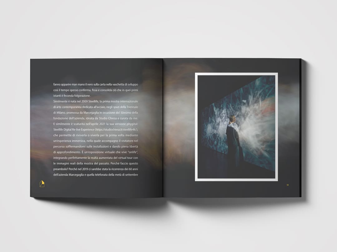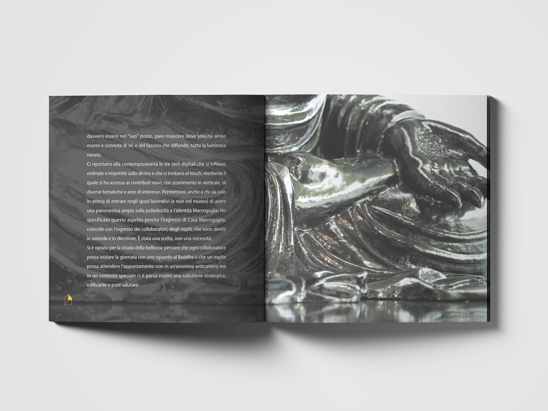 Lo si svilirebbe a considerarlo alla stregua di un catalogo, al contrario è esso stesso opera d’arte, grazie all’interpretazione creativa che ha dato Nicola Vinci. Anche lui artista, ha catturato con la fotografia la poesia e le visioni che si respirano negli ambienti di Casa Marcegaglia, riproponendole nel corpus iconografico del volume.