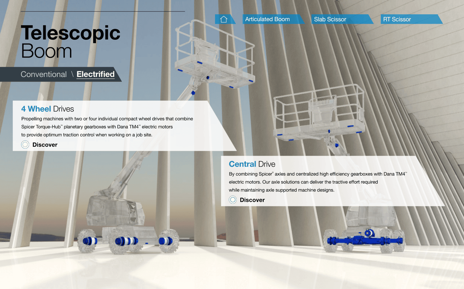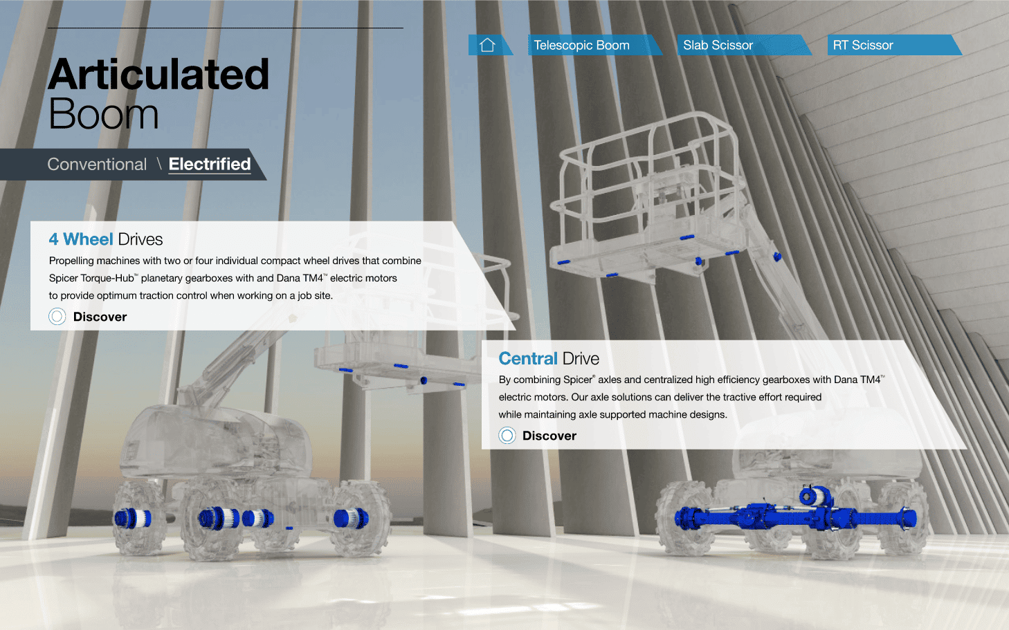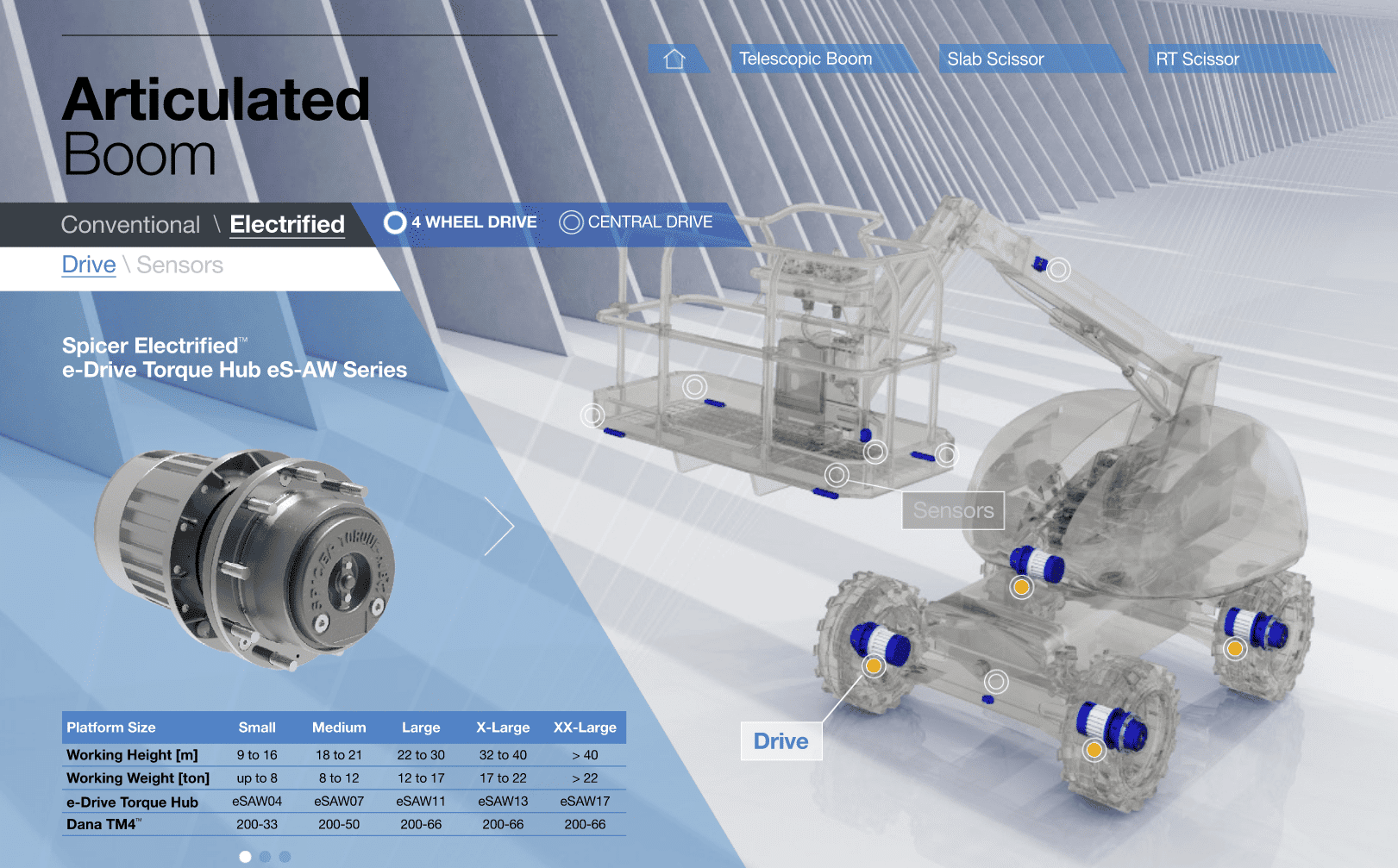 Along this line, we have designed for Dana Incorporated, the American multinational leader in fully integrated transmission systems and electrified propulsion systems for vehicles, the new MEWP e-pub tool, to convey Dana’s vast production offer dedicated to manufacturers of aerial platforms. .