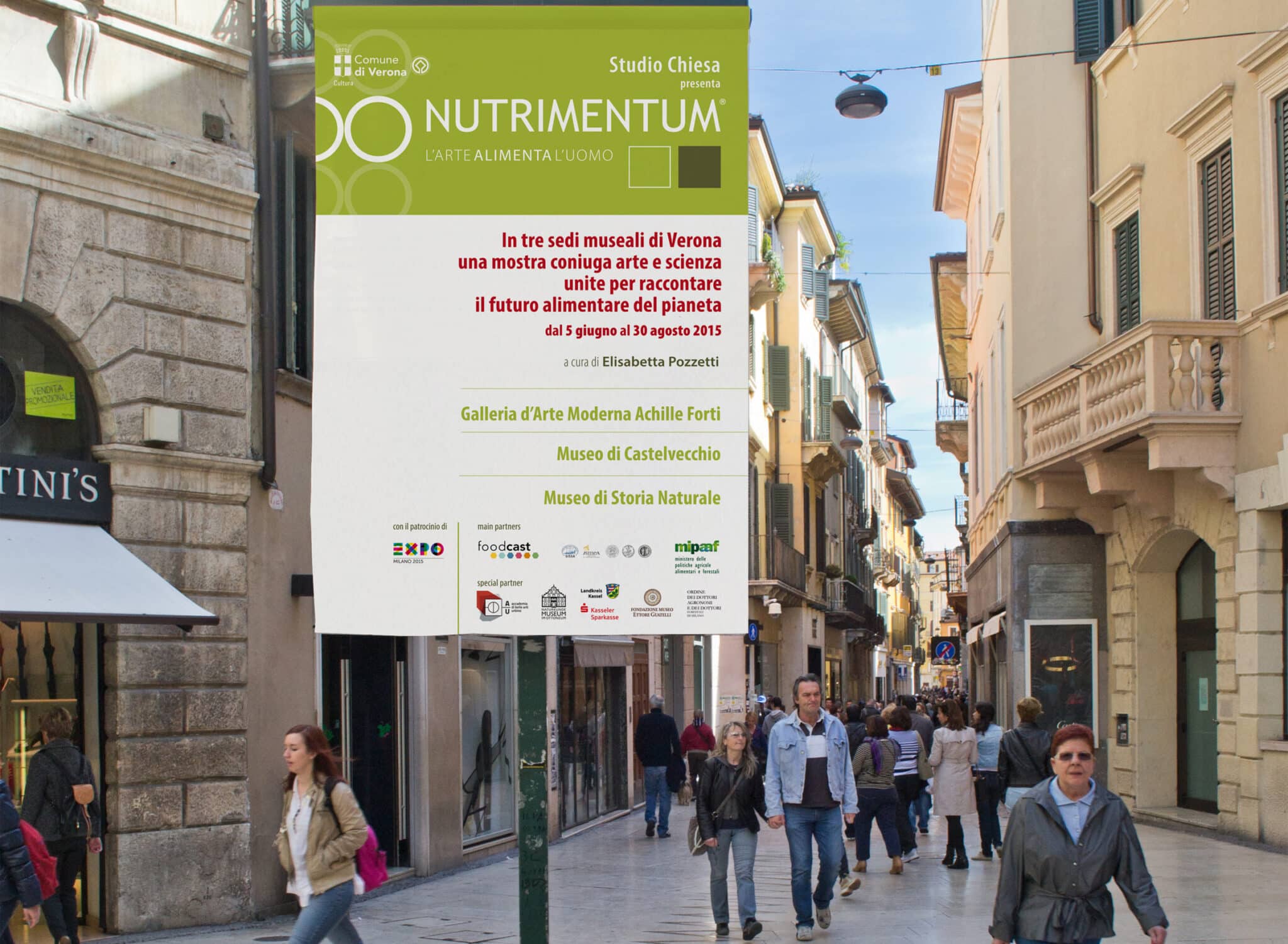 “Nutrimentum. L’arte alimenta l’uomo” [Nutrimentum. Art feeds mankind], is a cultural project in which artists and scientists meet to address the theme of food and sustainability brought into play by 2015 Milan Expo. We came up with the concept and its creation thanks to our natural predisposition to forge connections between different fields which, in this case, reveal our passion for art and culture and our sensitivity to sustainability issues. Nutrimentum has become a wonderful opportunity for discussion where different knowledge and languages have led to the creation of meetings, conferences and exhibitions. Like a conference in Verona and exhibitions at the Museum of Natural History, the Achille Forti Gallery of Modern Art and the Castelvecchio Museum. In addition to the concept and the curatorship, we designed the logo, various communication tools and an online platform where we took care of the content editing in every detail.