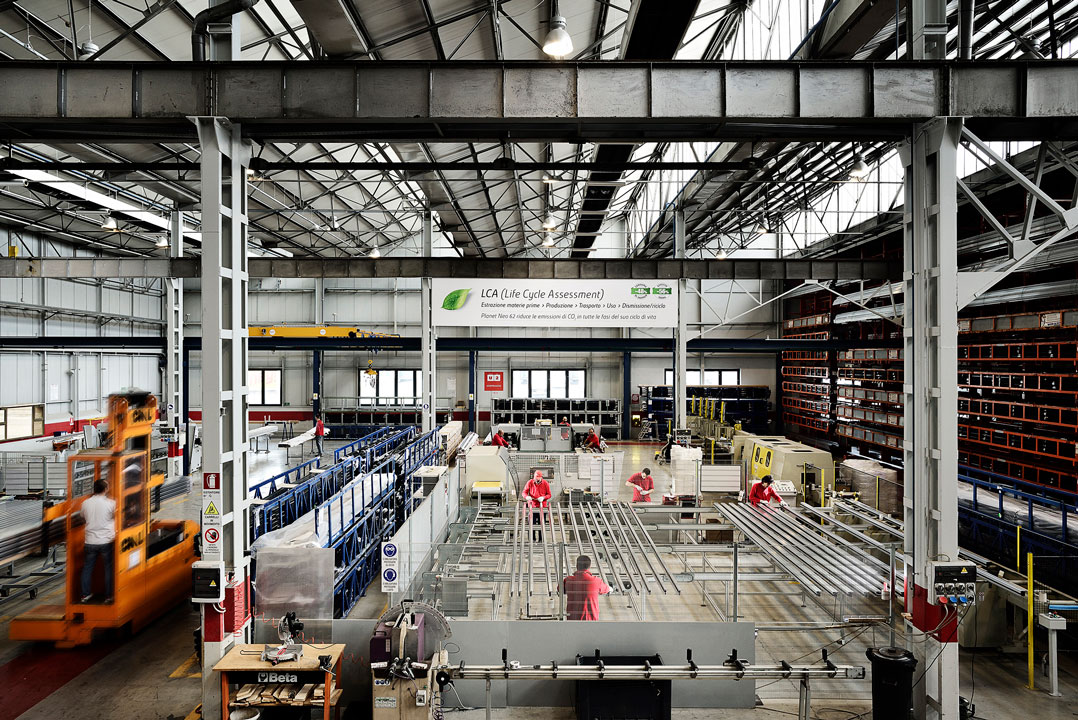 Sul fronte prodotto, una felice intuizione di Valentino Fresia, tradottasi poi in un’intera serie di serramenti sostenibili, è la Gamma NEO, barre composte da alluminio di riciclo e strisce di poliammide anch’esse rigenerate, che mantengono inalterate le prestazioni in termini di isolamento acustico e termico e di durabilità: oggi un successo green, ai tempi una novità accolta tiepidamente dal mercato. L’orgoglio è di aver ottenuto per questi prodotti la certificazione EPD®, un riconoscimento prestigioso di sostenibilità ambientale che è ancora raro incontrare nelle PMI. Altre certificazioni, tra le quali anche alcune non obbligatorie, ma che testimoniano l’attenzione dell’impresa nei confronti non solo dell’ambiente, ma anche della qualità della produzione, sono elencate in quello che si può considerare il “manifesto” operativo di Fresia Alluminio dal bel nome di “Profilosophy” che con un guizzo di autoironia sottolinea che l’attività che qui viene portata avanti risponde a una concezione ben precisa del business, che travalica i puri numeri.