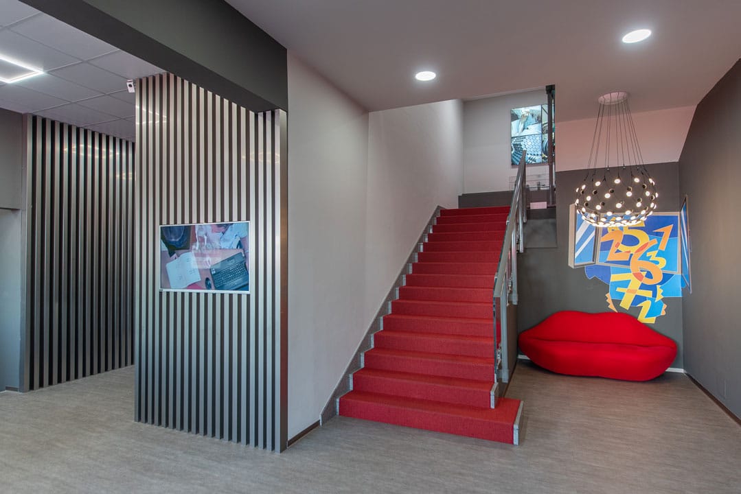 Reception e uffici hanno una sobria eleganza, qua e là si colgono dettagli di design collocati in modo quasi casuale, non invasivi ma immediatamente percepibili.