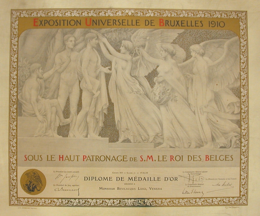 «L’inizio documentato della Tessitura –racconta Alberto Bevilacqua – risale al 1875 con il mio bisnonno Luigi». È lui che, insieme al socio Giovanni Battista Gianoglio, compra un palazzo in Fondamenta San Lorenzo per aprirvi una manifattura tessile. Dei due chi ha esperienza in questo campo è Gianoglio, mentre di Luigi è nota solo una precedente attività come commerciante di vini. Tuttavia in lui alberga una sensibilità artistica maturata in famiglia visto che il padre Sante è un margariter, cioè un artigiano delle classiche perle di vetro veneziano. La bellezza e la sapienza delle lavorazioni tipiche veneziane gli scorrono nel sangue e per di più quello è un momento storico in cui in Europa si sta riscoprendo l’artigianato e «il pezzo unico» in contrapposizione alla produzione industriale «di serie» con i suoi effetti negativi estetici e sociali. Sono le teorie propugnate dal movimento Arts and Crafts che nato nell’Inghilterra della seconda metà del XIX secolo ebbe un forte impatto anche in altre nazioni, Stati Uniti e Giappone compresi.