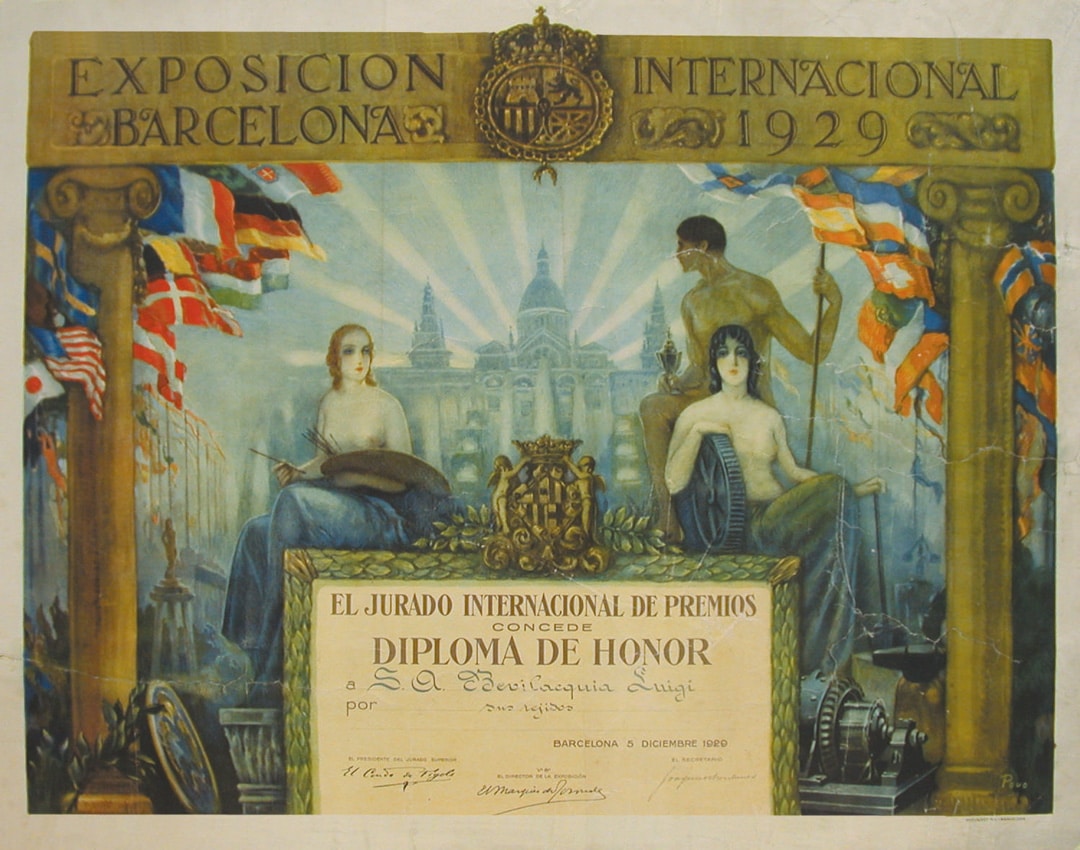 Il periodo che dall’inizio secolo si estende fino agli anni Quaranta fu estremamente ricco di commesse importanti il cui elenco sarebbe troppo lungo anche se ciascuna di esse contiene una storia che sarebbe degna di un racconto. Lo faremo solo per due: la Sala delle Feste del transatlantico Conte di Savoia, varato nel 1931, e le tende del teatro La Fenice nel 1937.