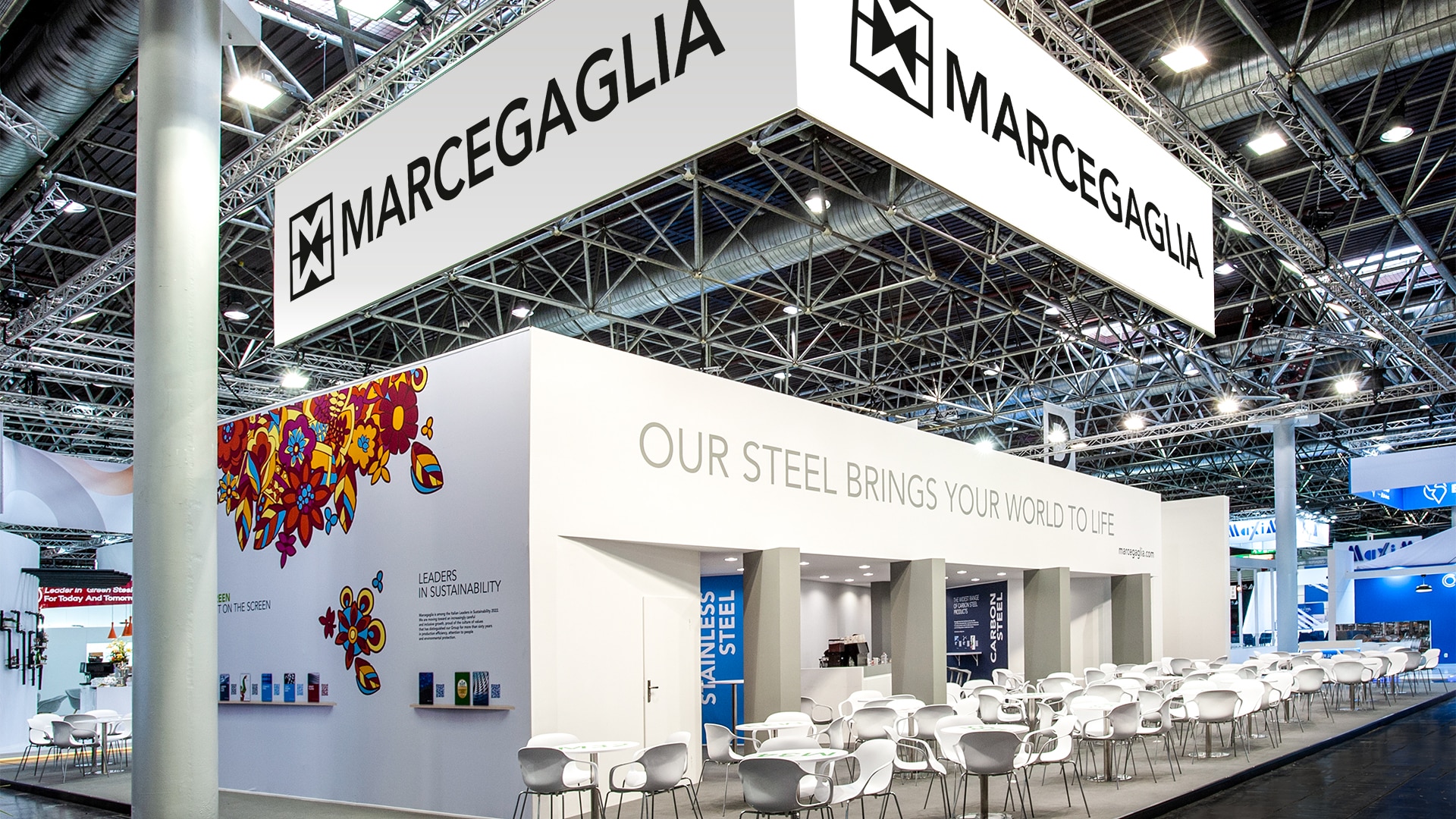 Protagonista del padiglione 3, in posizione centrale e ben visibile, è stato anche quest’anno lo stand Marcegaglia, di cui Studio Chiesa ha gestito ogni fase di realizzazione: dall’iscrizione alla progettazione architettonica, dall’intero allestimento dello stand ai servizi offerti agli ospiti, dal catering al desk di accoglienza e registrazione dei presenti.