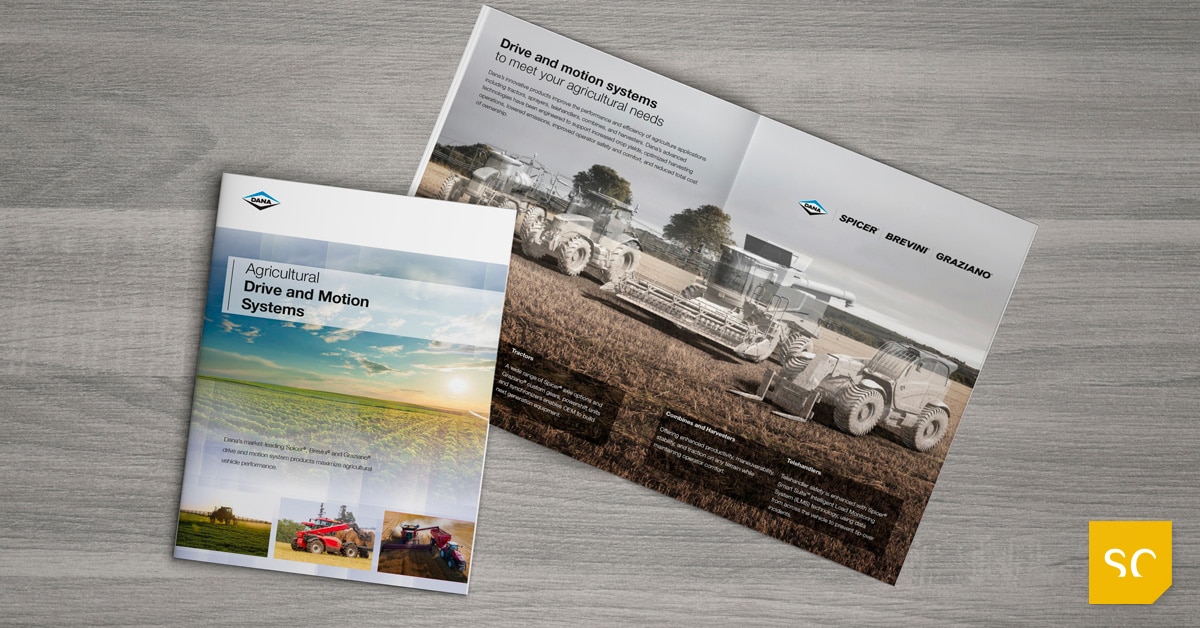 Insieme a Dana Incorporated ci siamo occupati della progettazione dei diversi strumenti di publishing aziendale. Tra questi la brochure delle applicazioni che il gruppo offre al settore agricoltura: un racconto che inizia dalla sezione corporate, in cui il segmento agricoltura è inquadrato a fianco degli altri, per scendere poi nella descrizione delle singole applicazioni e dei relativi prodotti.