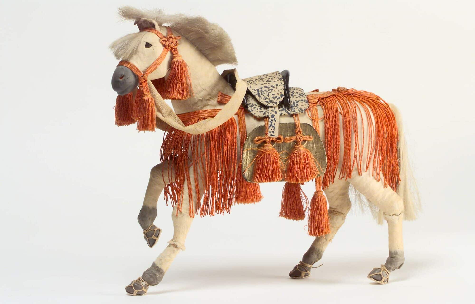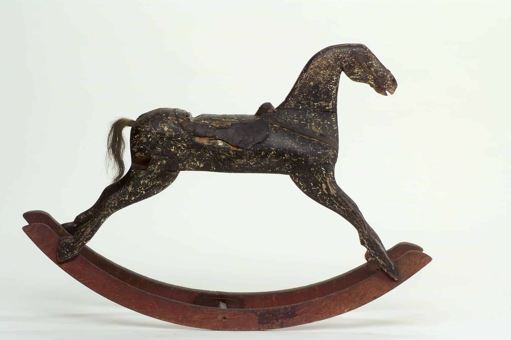Già dalle prime sale si capisce che il mondo dei cavalli giocattolo è estremamente variegato e comprende tante tipologie, tutte presenti nel museo con esemplari anche di grande pregio. Ci sono i cavalli a dondolo, ma anche quelli a traino, muniti cioè di rotelle che permettono di trascinarli con una cordicella. Abbiamo già citato Aureliano, ma fa bella mostra di sé anche il più recente Tirvo, dalla sciccosissima sella in pelle di serpente, dono personale di Guido Berlucchi (fondatore dell’omonima azienda vinicola) che nella lettera di accompagnamento scrisse: “mia nonna mi fece costruire questo cavallo nero quando avevo 5 anni e lo aveva voluto uguale al cavallo che trainava la sua carrozza”. Alcuni dei cavalli a rotelle si potevano anche cavalcare: è il caso di Orio, realizzato in Italia tra gli anni Venti e Trenta, con la sua seduta in legno a misura di bambino che avrebbe potuto avanzare spingendosi con le gambe. Particolare curioso: il corpo è stato dipinto con un effetto spugnato che riproduce in modo sorprendentemente realistico il pelo riccio di alcune razze equine come i bashkir americani.