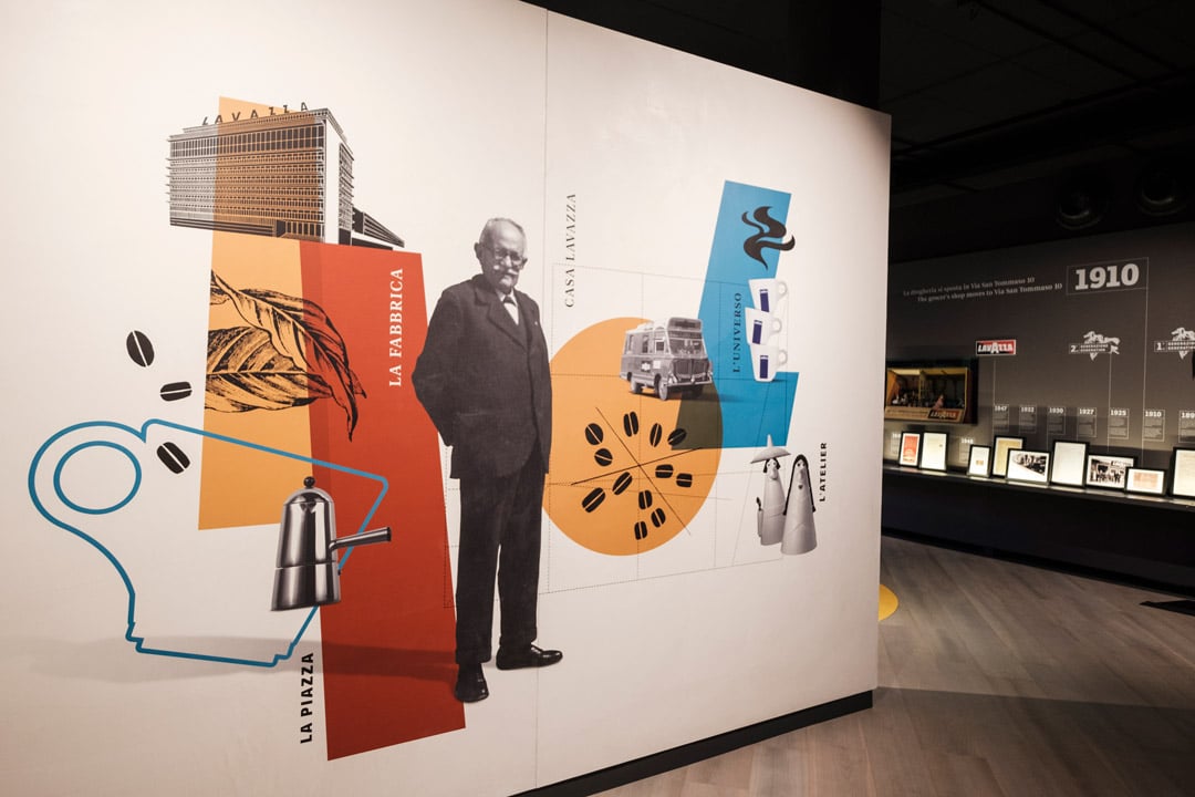 La prima area che si incontra dopo aver varcato la soglia “presidiata” da due furgoncini FIAT degli anni Cinquanta (i modelli sono quelli impiegati ai tempi per le consegne del prodotto), è CASA LAVAZZA, lo spazio più intimo ed emozionale, dove un lungo milestone wall racconta i quasi 130 anni dell’impresa – saranno festeggiati nel 2025 – a partire da quella cambiale di 50 lire firmata da Luigi Lavazza che è stata l’inizio di tutto. Siamo nel 1885, a Murisengo, manciata di case nelle campagne dell’Alessandrino, i cui abitanti conducono una vita grama legata al lavoro dei campi, sempre sotto le grinfie degli incerti atmosferici. Anche la famiglia di Luigi è contadina e il suo futuro non si sarebbe discostato di molto da quelle terre, se non fosse che proprio quell’anno una serie di gelate distrugge i raccolti e lo spinge a trasferirsi a Torino in cerca di migliori opportunità. Il prestito chiesto alla Società Operaia di Murisengo a quello serve, a svincolarsi dalla precarietà di un’esistenza nella quale tutte le mattine devi farti il segno della croce perché non grandini o viceversa imperversi la siccità. Nella città sabauda Luigi lavora, nelle tante attività occasionali proposte a chi come lui sa leggere, scrivere e far di conto ma non molto di più, e alla sera studia: si iscrive infatti prima alla Scuola di Commercio e poi alla Scuola Municipale di Chimica Cavour, una scelta che in futuro gli frutterà l’intuizione delle infinite possibilità commerciali offerte dal caffè: in origine le tipologie importate erano infatti solo tre – naturale dal Brasile, moka dalla penisola arabica e portorico appunto dal Portorico – ma Luigi Lavazza capisce presto che i gusti personali richiedono nuovi sapori e aromi che si traducono nelle miscele (oggi si chiamano blend). Le stesse miscele la cui composizione è annotata meticolosamente su un quadernetto, il primo compilato da Luigi, che fa capolino da un cassetto nella ricostruzione ideale della torrefazione aperta nel 1910. Già, perché nel giro di un paio di lustri dal suo arrivo a Torino, nel 1894, Luigi rileva una bottega di coloniali in via San Tommaso 7 che poi, sull’onda di una crescente notorietà, sposta qualche metro più avanti sulla stessa strada per avere più spazio. Nel contempo il caffè è diventato il suo core business (così si direbbe al giorno d’oggi), anche grazie all’invenzione delle “ricette” a cui accennavamo prima. La modernità di Luigi Lavazza è proprio nell’aver in qualche modo percepito, in netto anticipo rispetto ai tempi, che il caffè non è un alimento, è un fenomeno antropologico e sociologico insieme, tant’è che ancora oggi le differenze geografiche nel suo consumo ci dicono tanto sulla varianza del life style: per esempio i più grandi consumatori pro capite di caffè sono i paesi del Nord Europa dove però l’espresso non viene apprezzato ed è rimpiazzato da un caffè dalle note più morbide, che si potrebbe definire “da meditazione”: come non pensare alle lunghe notti boreali confortate nel calore domestico da una bella tazza di bevanda bollente? Il caffè è manifesto anche delle connessioni sociali, difficile pensare che l’abitudine tutta napoletana del “caffè sospeso” possa prendere piede per esempio in Finlandia. In questo variegato panorama di gusti e consuetudini il blend è lo strumento per rispondere alle esigenze dei consumatori.