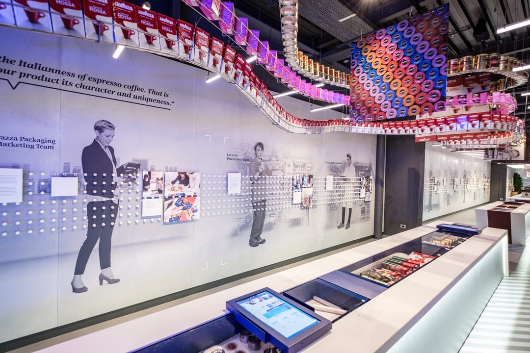 L’anima più squisitamente didattica del museo si esplica nella seconda sezione, FABBRICA, che conduce il visitatore lungo tutta la filiera del caffè, dalla pianta al packaging e alla distribuzione. Nel lungo corridoio allestito con tavoli interattivi si affollano studenti di ogni età e di ogni indirizzo scolastico: parliamo di almeno 6-7 classi al giorno che qui trovano innumerevoli spunti di riflessione su temi diversi, dalla sostenibilità alla comunicazione alla storia della grande stagione industriale di Torino che poi si identifica con quella dell’Italia del Dopoguerra. Ecco, l’attenzione verso la scuola è sicuramente uno degli ingredienti della vitalità del museo: gli insegnanti vengono supportati da un team preposto con la delineazione di percorsi formativi tagliati “tailor made” sulle esigenze delle singole classi. Il coinvolgimento e la curiosità dei ragazzi è la risposta, oltre che all’interesse suscitato dai contenuti, anche alla bontà della relazione diretta con i singoli docenti, un rapporto che non di rado si prolunga nel tempo facendo così della scuola un potente ambassador del marchio.