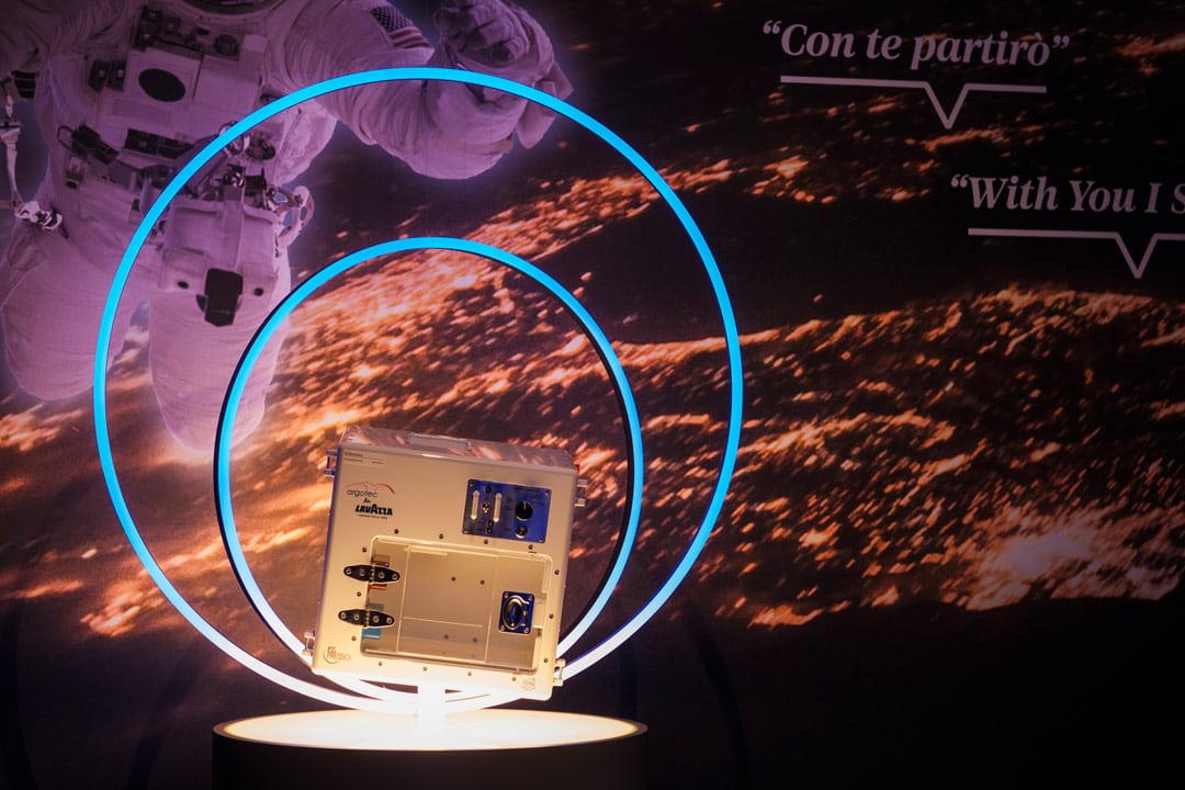 Infine l’apoteosi: il 3 maggio 2015 l’astronauta Samantha Cristoforetti beve il primo espresso preparato nello spazio, cioè nelle condizioni estreme della microgravità. Un traguardo reso possibile dalla realizzazione di una macchina straordinaria, la ISS – il pezzo del museo è l’originale il che accresce la sua eccezionalità – che è il nostro primo pezzo iconico: un tecnologico cubo in alluminio aerospaziale di colore bianco (per evitare l’assorbimento della luce), frutto di una partnership tra Argotech, Lavazza e Agenzia Spaziale Italiana. Una progettazione durata diciotto mesi per il piacere tutto italiano di bere il caffè ovunque e comunque. Intendiamoci, vero espresso con tanto di crema, peccato solo per la tazzina sostituita da un sacchetto con cannuccia… ma non si può avere tutto!