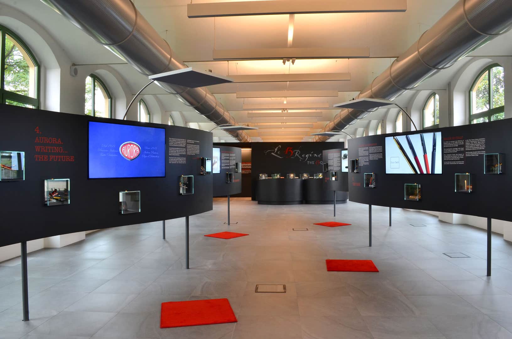 Dalle macchine da scrivere alla scrittura a mano: nel percorso museale è il passaggio successivo che si articola in più aree. Innanzitutto il tunnel della cronologia della scrittura con un’esposizione degli strumenti usati nel corso dei secoli, poi la rassegna delle “13 regine” cioè i modelli, di marchi diversi, che hanno fatto la storia della stilografica (qui troviamo il secondo pezzo iconico, la Hastil di Marco Zanuso) e la parte dedicata più specificamente alla produzione, questa sì, di Aurora, con una serie di autentiche chicche come Asterope (il terzo pezzo iconico) del 1934, la quasi contemporanea Etiopia, in celluloide bianca con l’aquila imperiale incisa sul cappuccio, a celebrazione dei successi coloniali italiani, la Topolino del 1937, con la sagoma del celebre character sul serbatoio della penna, testimonianza di una delle prime collaborazioni di Disney con l’Italia, la mitica Auretta degli anni Sessanta, la “stilografica dei bambini”, relativamente economica, in plastica, a doppia cartuccia (e quindi a prova di “macchia”) lanciata, prima volta nella storia della manifattura, con un campagna pubblicitaria televisiva («C’è il momento dei giochi… e quello dei compiti: il momento di Auretta»).